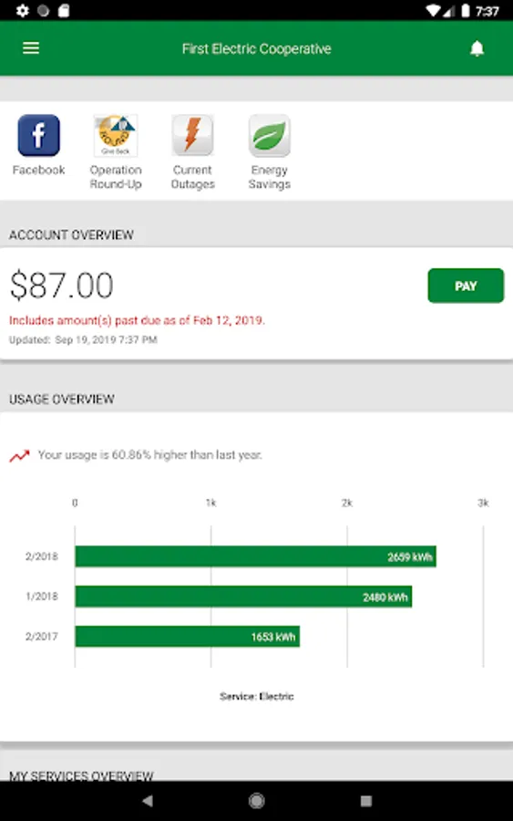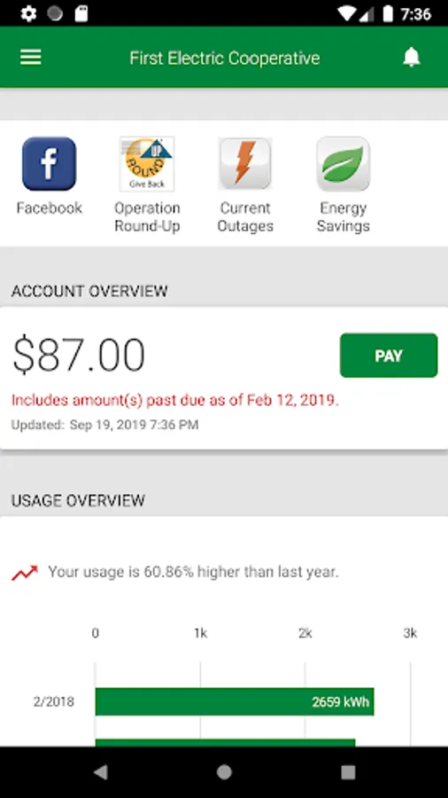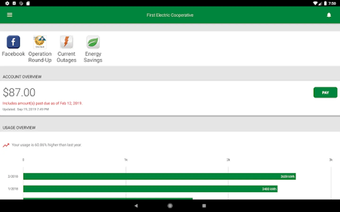 The First Electric Cooperative app is a new and improved way to manage your account. Make a payment, view usage and billing information, notify us of account and service issues, receive up-to-date news alerts and more.