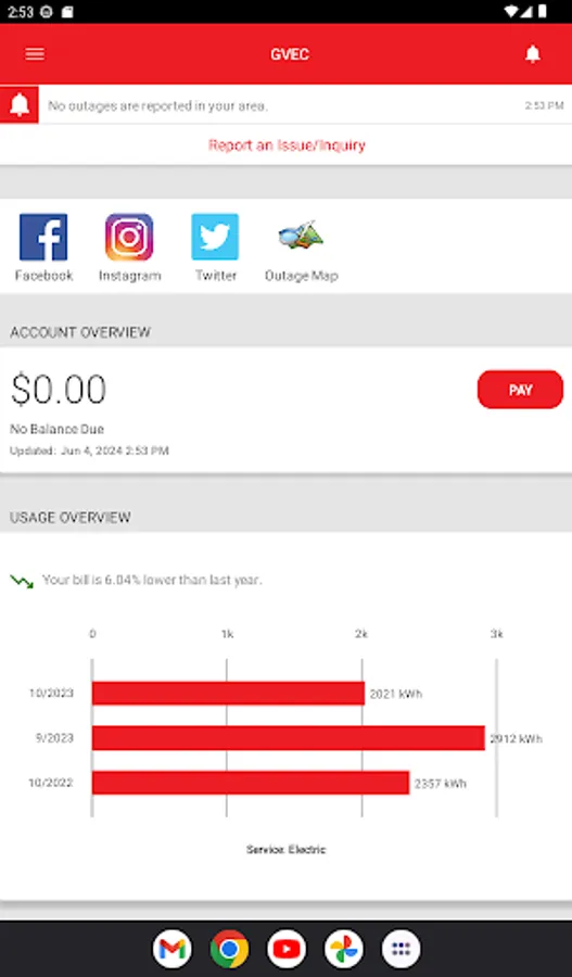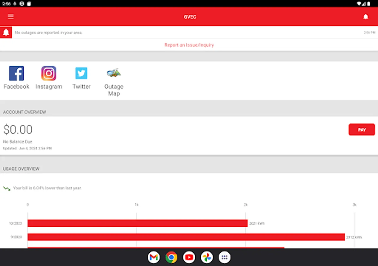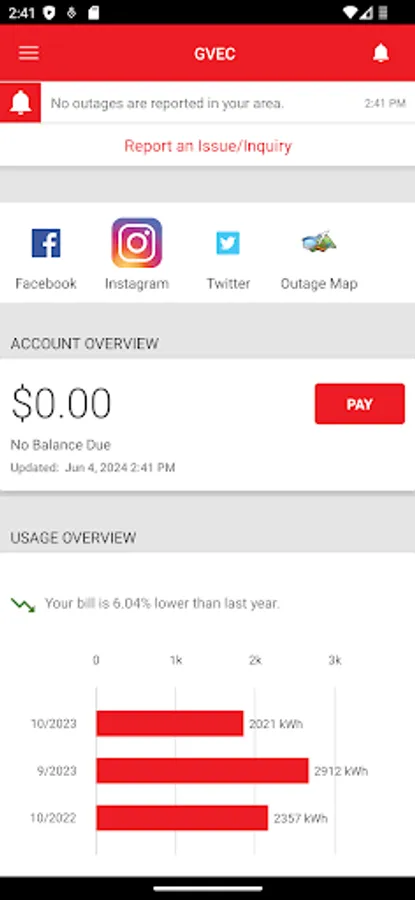 Quick Links—Link to frequently used services including reporting an outage and staying up-to-date on important notifications.