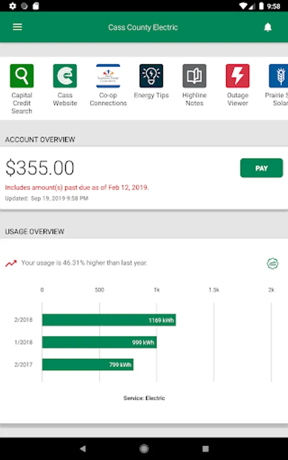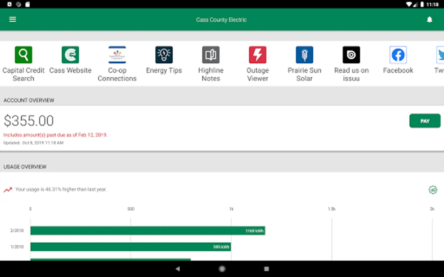 With the Cass County Electric Cooperative app, you’ll be able to easily manage and view your accounts anywhere, anytime. The easy to use app secures access to your Cass County Electric Cooperative account. You can view your bill and monitor daily energy.