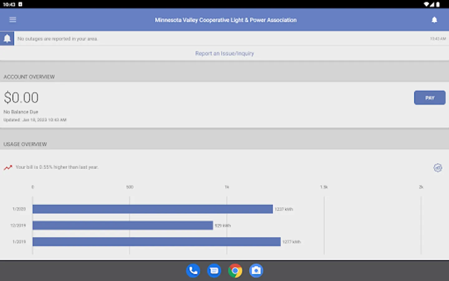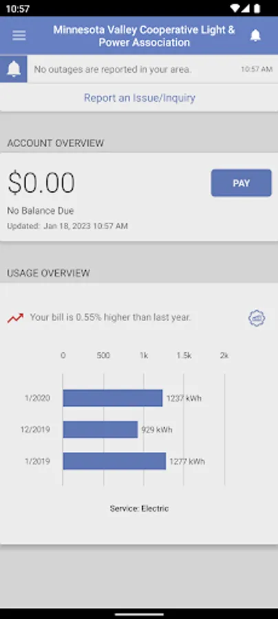 The MN Valley Coop Light and Power app is simple, fast, intuitive and easy to use. The power is in your hands! Minnesota Valley Coop Light and Power Assn is located in Western MN. We provide electrical service to rural MN customers. By accessing the MVCLP app, members will have our most requested services at your fingertips. - Pay your bill - View your usage - Report an outage and view outage map - Sign up for notifications - Call, chat or send us an email