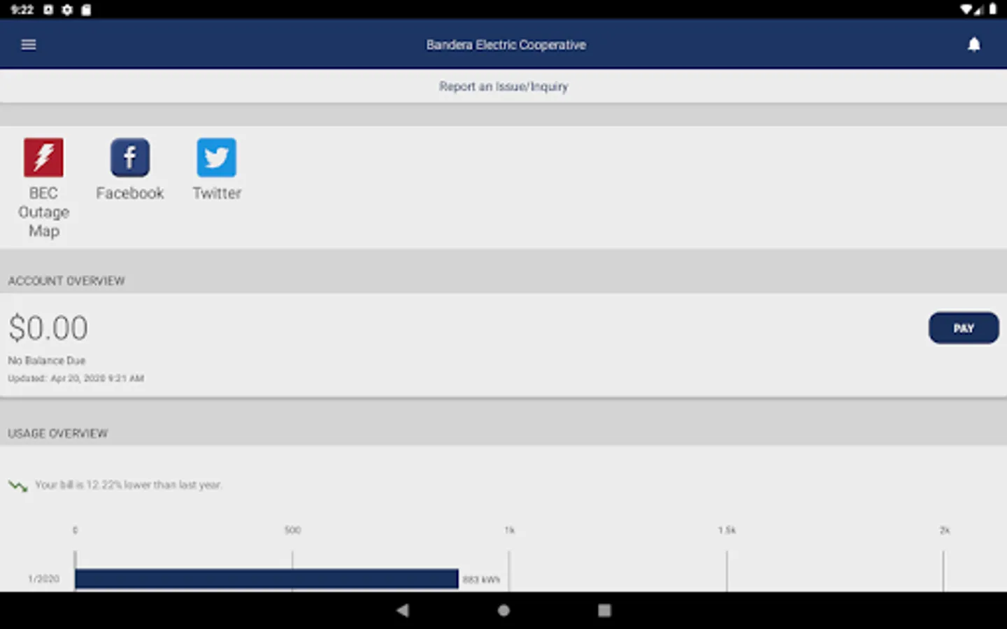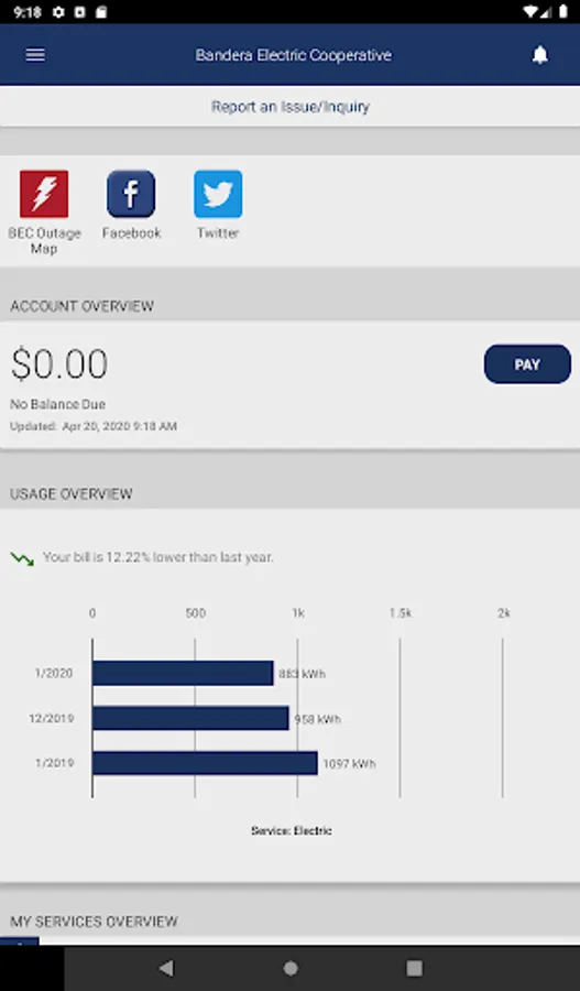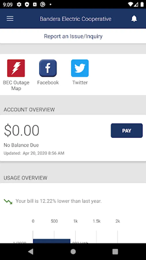 myBEC provides Bandera Electric Cooperative members easy account management at their fingertips. Members can view their billing, electric usage, manage payments, setup notifications, report service interruptions, receive updates from BEC and more.