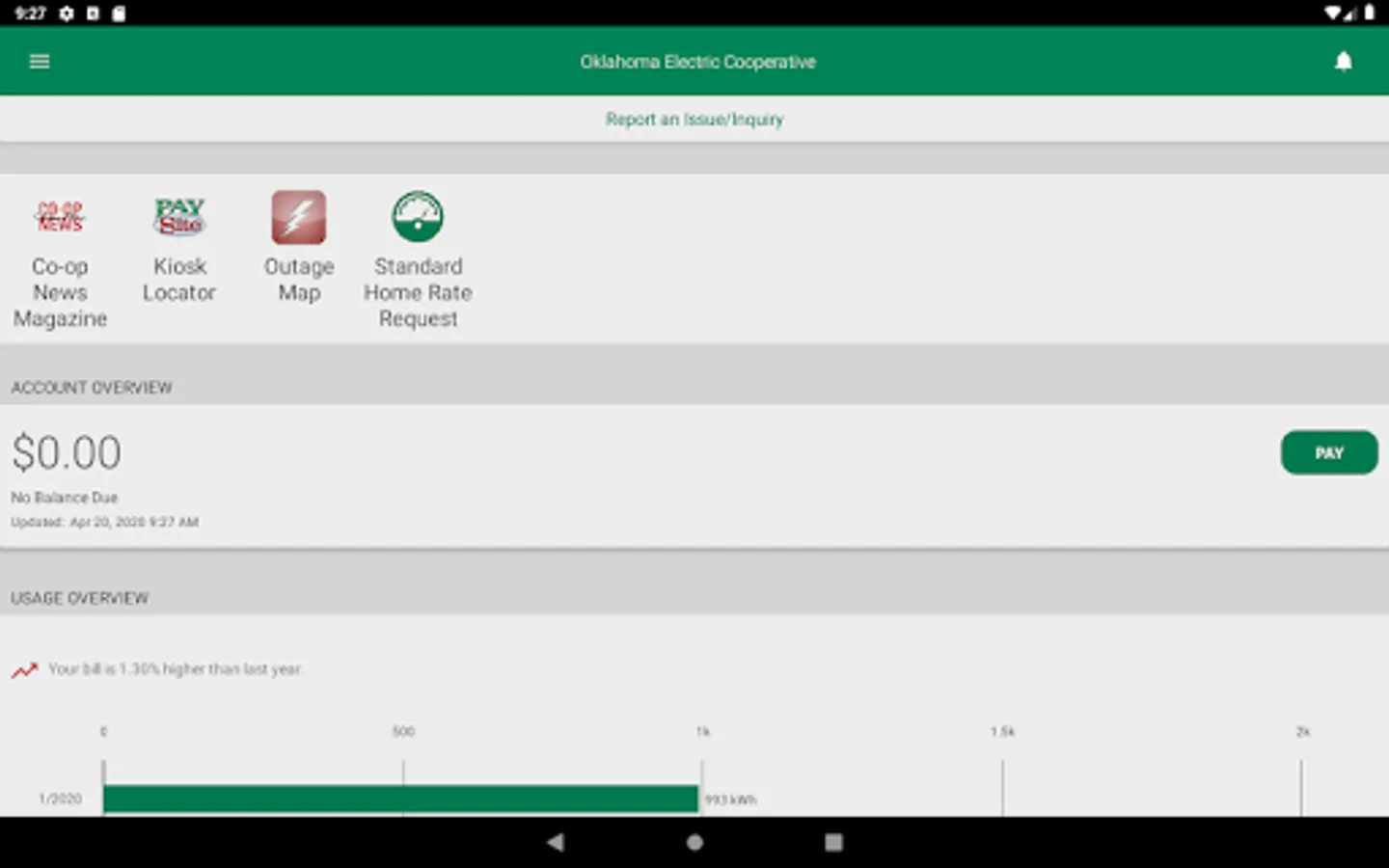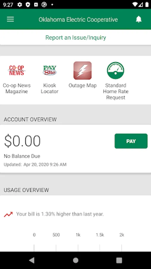(OEC Electric Members Only) View energy use graphs to identify high usage trends. Navigate graphs quickly using an intuitive gesture-based interface.