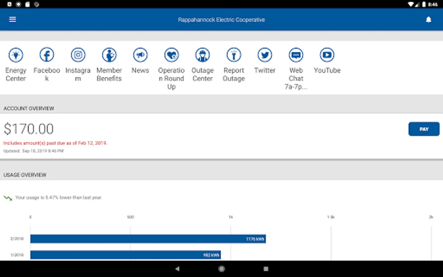 MyREC SmartHub provides Rappahannock Electric Cooperative customers account management at their fingertips. Customers can view their usage and billing, manage payments, notify customer service of account and service issues and receive special messaging from REC.