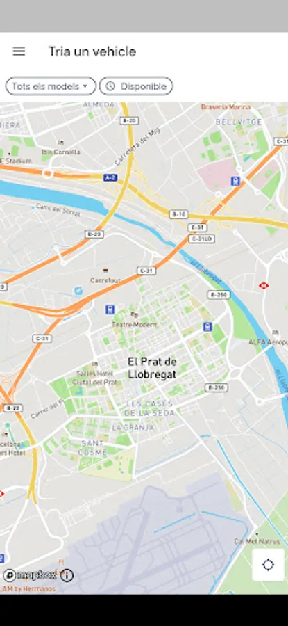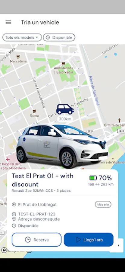 Application of the shared electric vehicle service in Prat de Llobregat. To access the service you must register at: https://www.elprat.cat/ciutat-i-territori/mobilitat/servei-de-vehicles-electrics-compartits.
