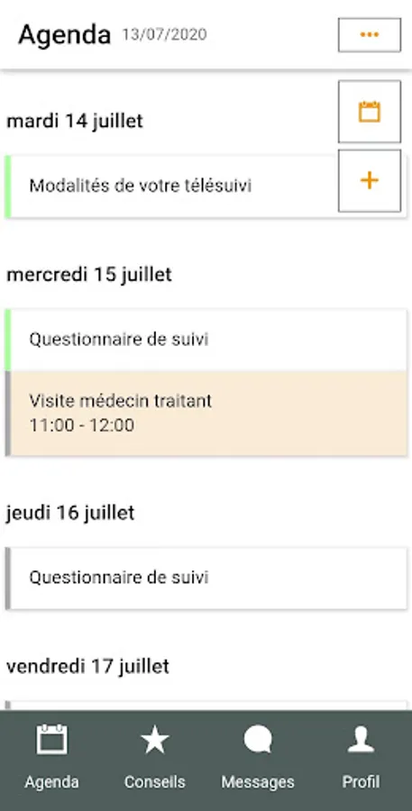 You can easily access all the events related to your care, find instructions and advice, adapted questionnaires as well as internal messaging to interact with the healthcare team.