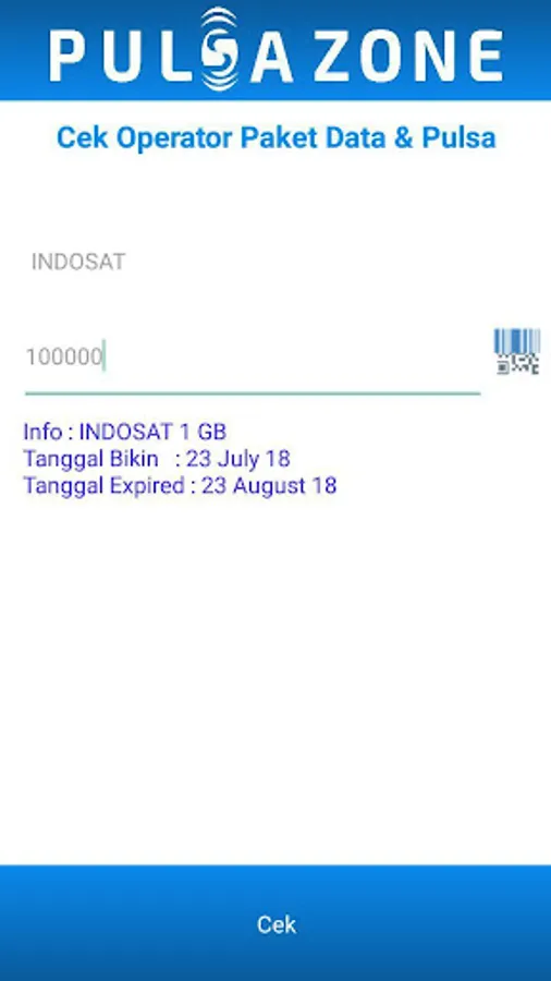 Especially for customers Pulsazone, to check the contents of data packets and pulses as well as the active period based on serial number / barcode / QRCode voucher inputted.