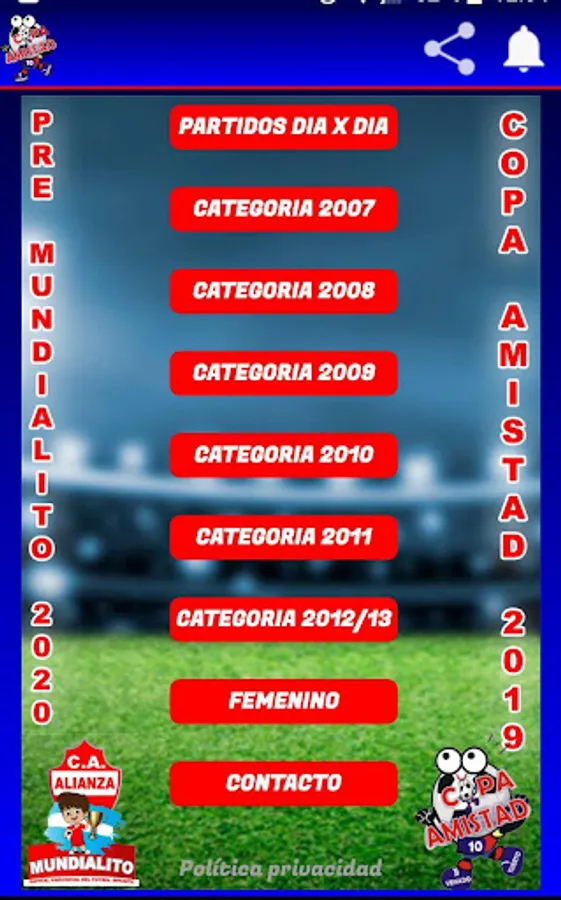APPLICATION WHERE YOU WILL FIND ALL THE INFO OF THE FRIENDSHIP CUP 2019 - PRE MUNDIALITO 2020.