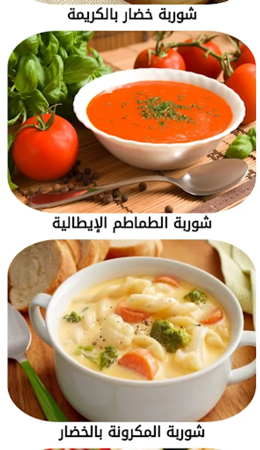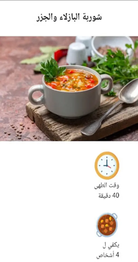 In this application, we will talk about a wide variety of easy and delicious soup recipes, including ingredients, method of work, cooking time, and the number of people for the specified meal.
