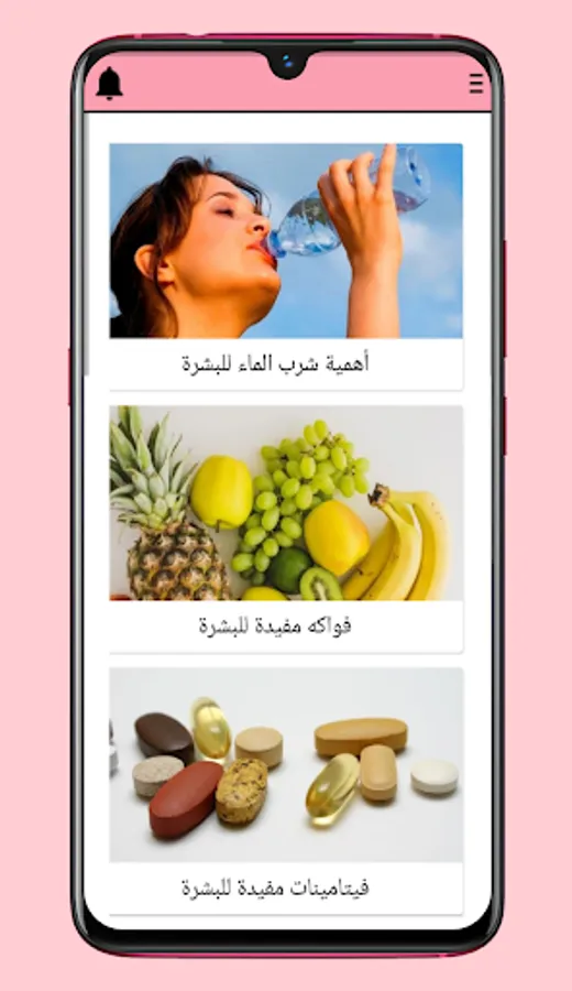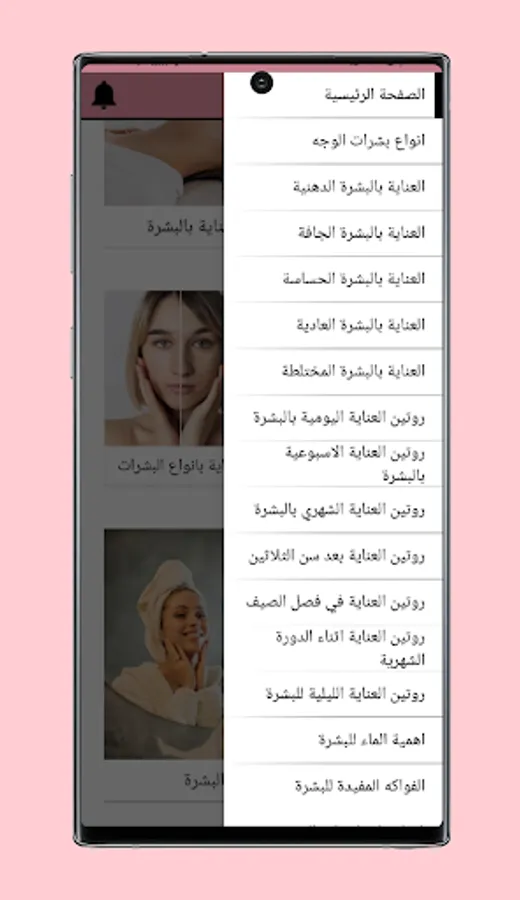 The application includes a set of information that helps women understand things that contribute to preserving the skin, such as some foods that contribute to increasing the freshness and smoothness of the skin, the benefits of water for the skin, and others.