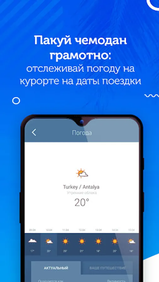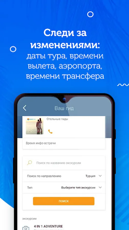 Be aware of the status of your reservation, have at hand all the documents for the trip, keep track of the flight schedule, transfer time, choose excursions and find out detailed information about them. The application will help to make travel preparations easy, and the vacation itself even more comfortable.