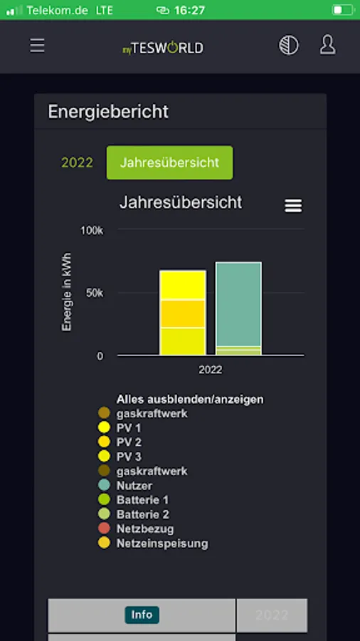 myTESWORLD is a solution from TESVOLT AG for the intelligent control of energy flows in your own home or business. Our myTESWORLD app offers you the opportunity to monitor, control and analyze energy flows in your property in order to get the best possible benefit from your renewable energy. Each of your TESVOLT Energy Managers is clearly displayed here on a platform and can now be viewed on the go. Discover the possibilities of our algorithms and services and use them even more comfortably!