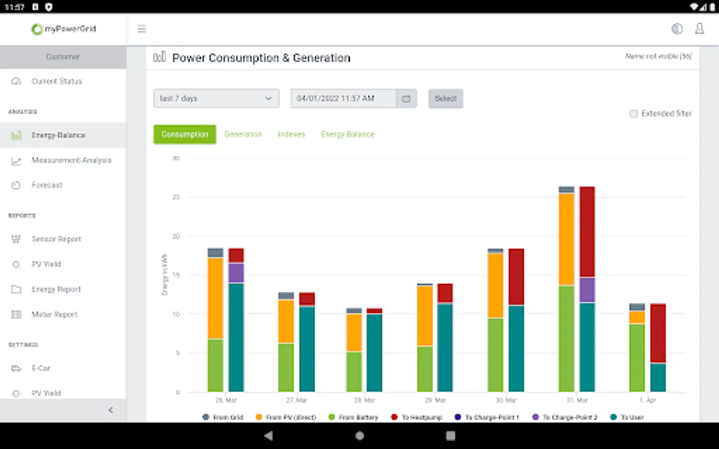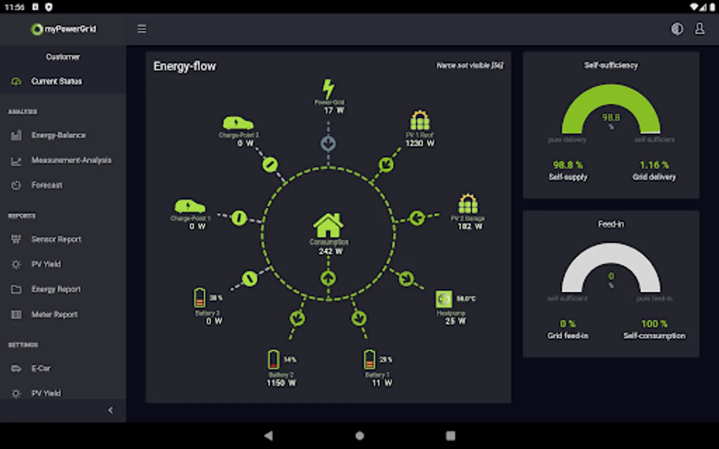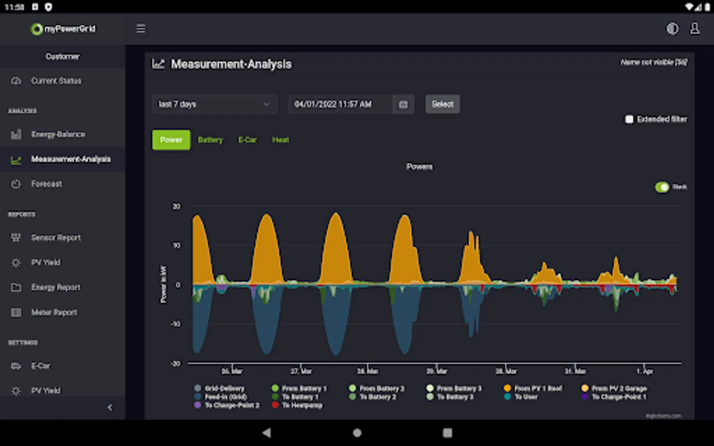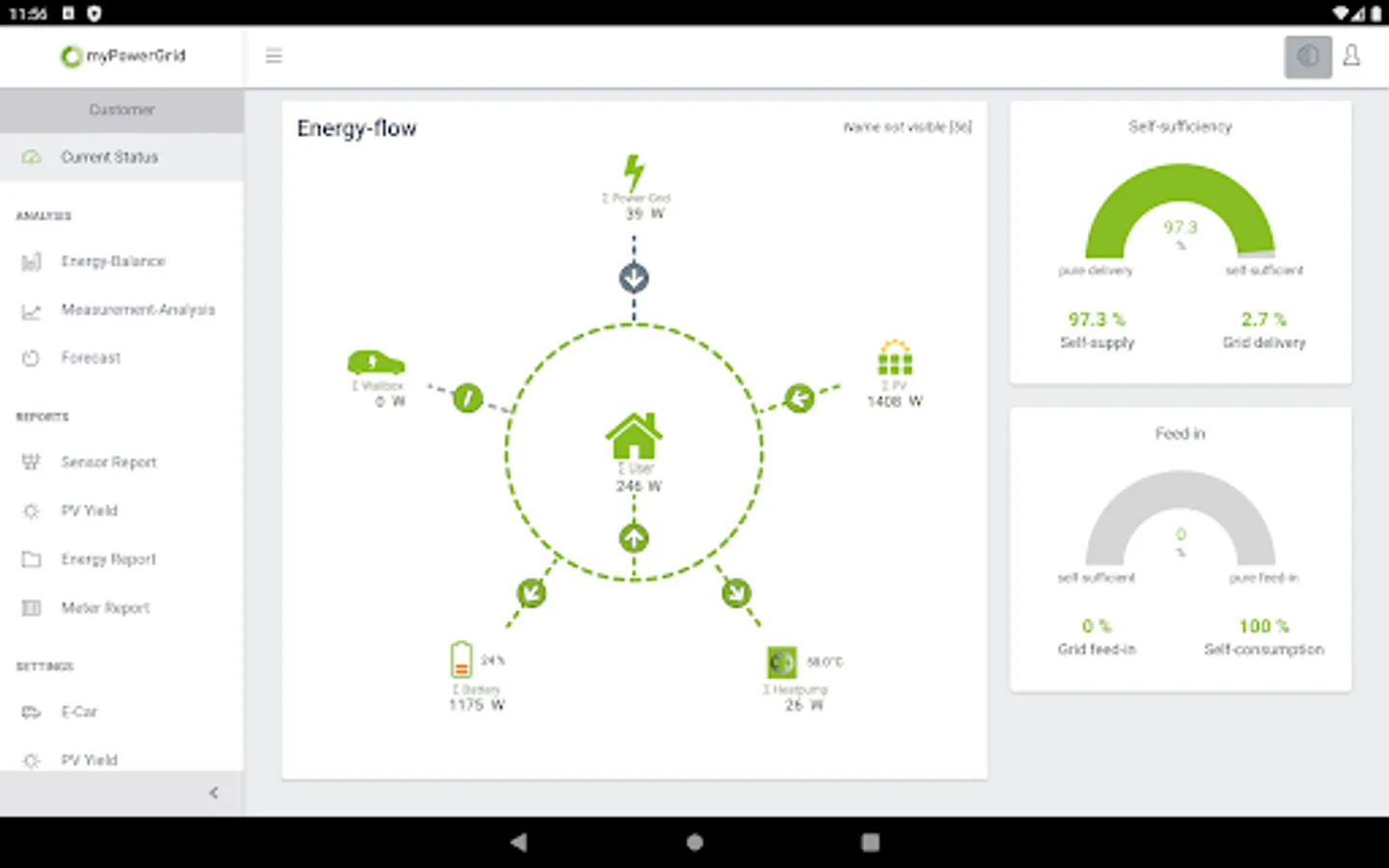 myPowerGrid is our solution for the intelligent control of energy flows in your own home or company. Our myPowerGrid app gives you the ability to monitor, control and analyze energy flows in your property to get the most out of your renewable energy. Each of your energy managers ("Amperix") is clearly displayed here in one platform, and can now be viewed on the go. Discover the possibilities of our algorithms and services and use them now even more comfortably!