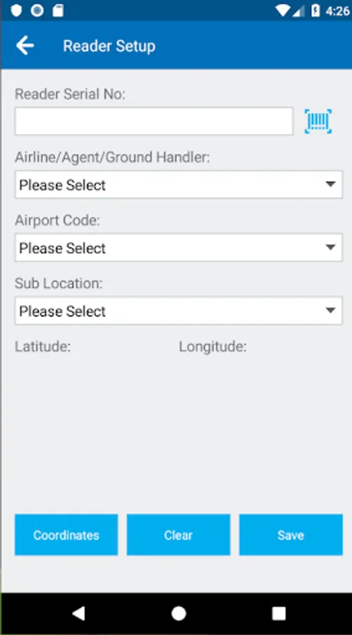 • Specify the reader settings, latitude and longitude location coordinates