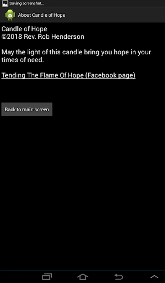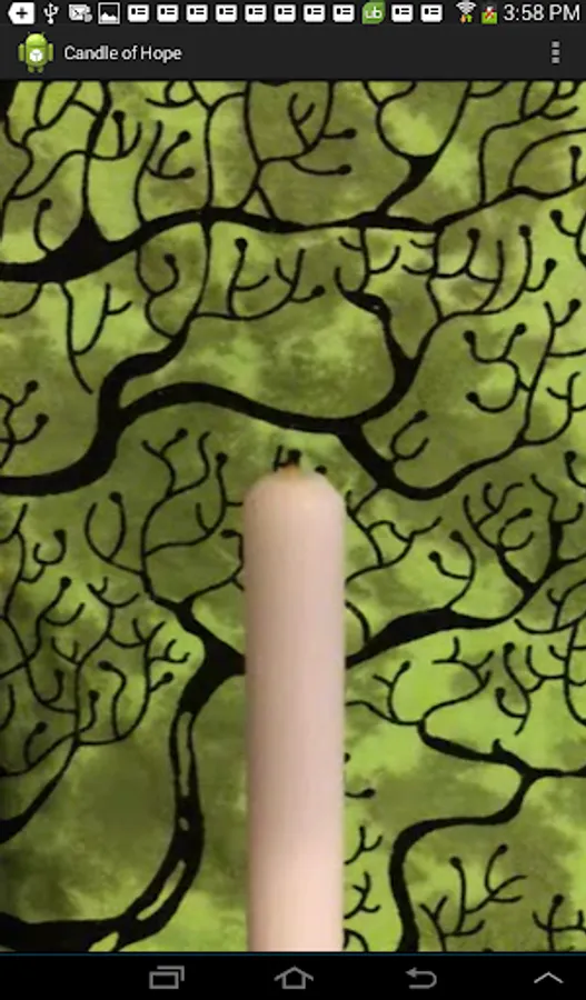 A virtual candle for "Tending the Flame of Hope", or any other use. Touch the screen to light or unlight it.