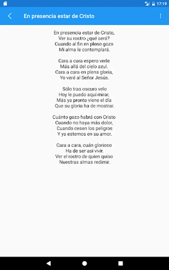 CC Corario Bethlehem is a mobile application that lets you view the lyrics, hymns and children's songs that are sung in Bethlehem Christian Community in Cochabamba Bolivia. The application also allows you to bookmark your favorite songs and view them all in one section.
