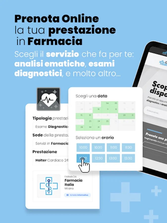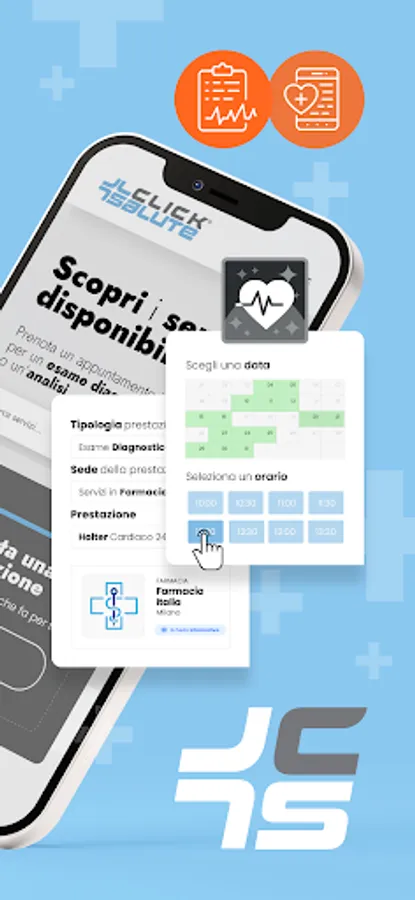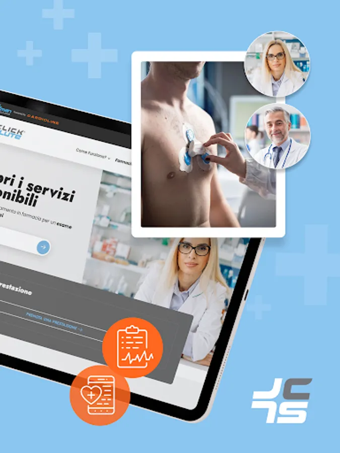 With ClickSalute you can book ECG, Holter, blood tests, blood pressure measurements and measure your cardiovascular risk directly from your smartphone or tablet.