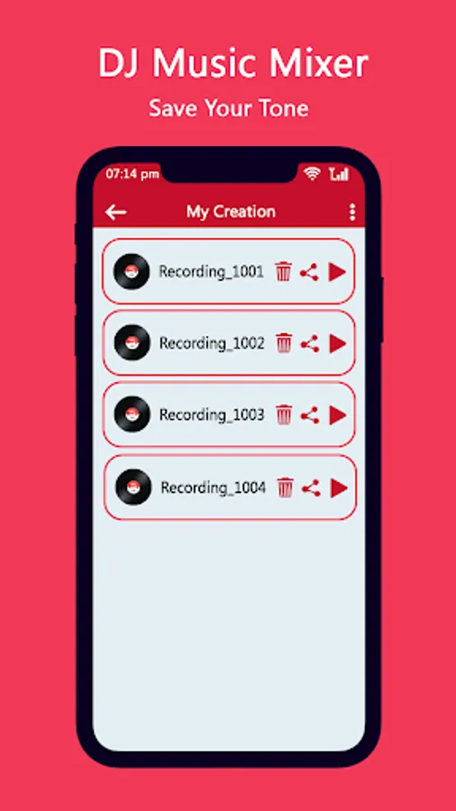 + There is a special function given in DJ mixer is that, in text and in recorded sound you can also add effects if you want. You can also adjust the Echo voice, Pitch and Sound. After mixing your music you can set them as your ringtone and as notification tone also.