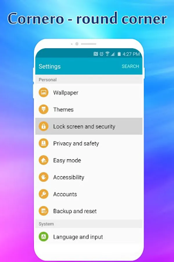 Cornero : Round Screen Corners offers many settings which allow you adjusting the corner's radius, corner color,