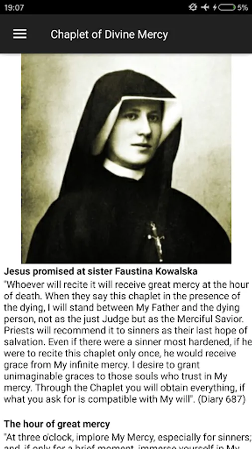 From Faustina's diary: "When they say this chaplet in the presence of the dying, I will stand between My Father and the dying person, not as the just Judge but as the Merciful Savior."