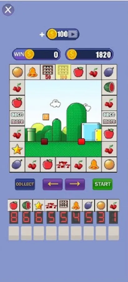 Table: Bar = 500, 77 = 20, Star = 15, Watermelon = 15, Bell = 5, Melon = 15, Orange = 5, Apple = 2 and Grape = 1