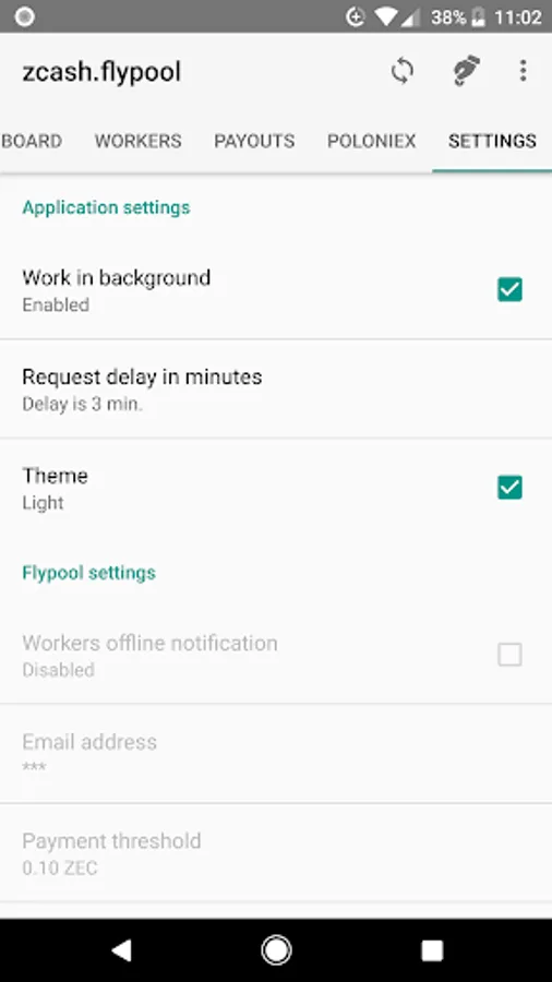 Add your Zcash wallet in by copy past or scan QR Code and you will see your mining progress. Application receive actual API data of your account on flypool.org.