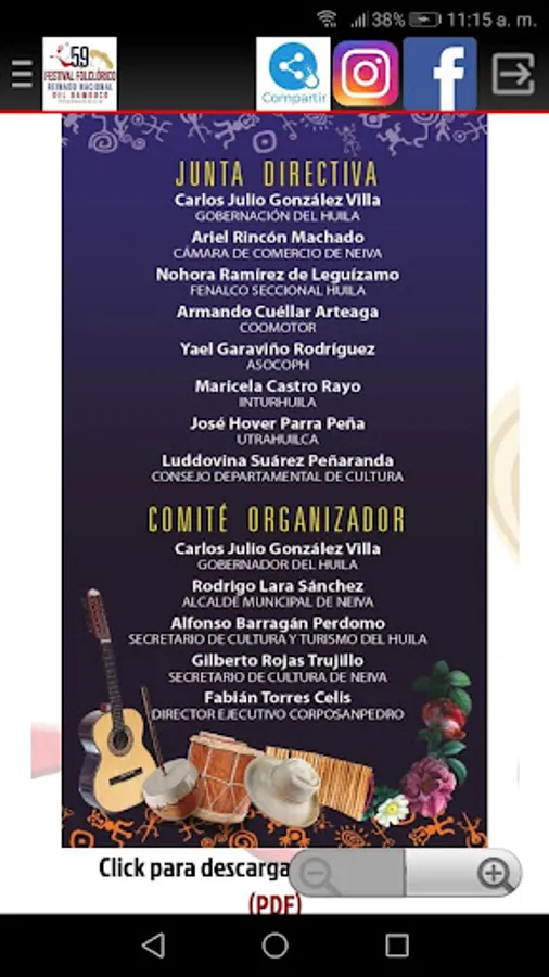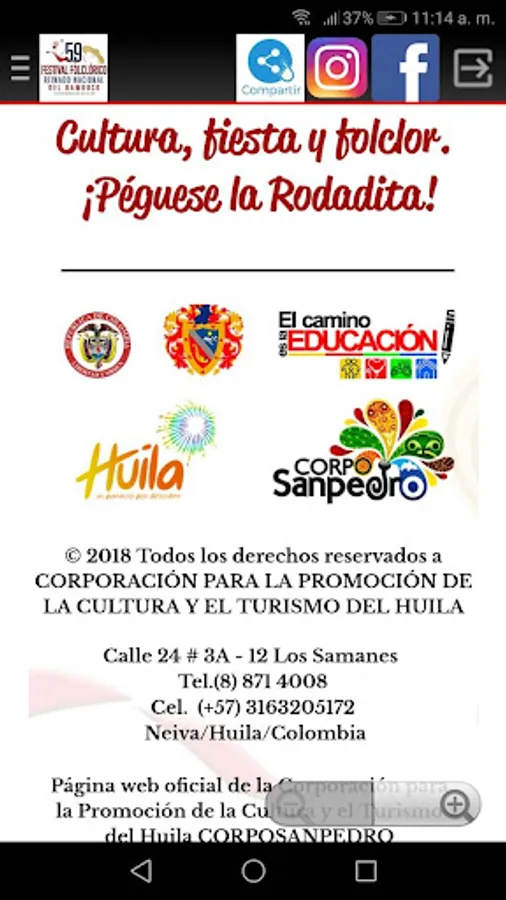 "CORPOSANPEDRO is an organization of mixed character and without Lucro spirit, cultural company, organizer of cultural, folkloric and tourist events, whose framework of action focuses on the management and articulation of efforts between the public and private sectors, oriented towards the achievement fundamental to guarantee the protection, dissemination, promotion, financing, execution and strengthening of the Folkloric Festival, National Reign of the Bambuco and International Folklore Show as a project of collective interest for the citizens of Huila, exercising its actions from the point of view of sustainability cultural, social and economic and recognizing the Festival its public nature and its status as a Cultural Heritage that it holds as of Law 1026 of 2006. " Ordinance 016 of May 30, 2014.