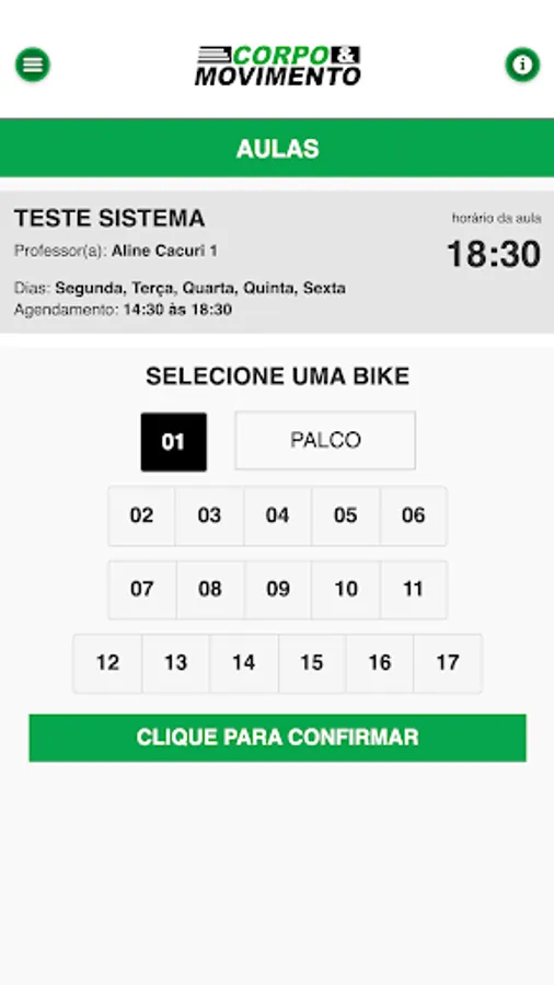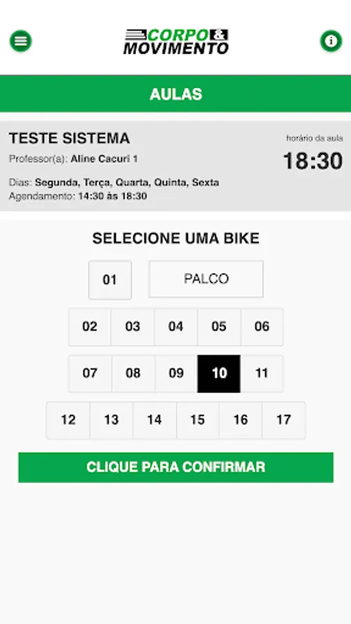 Scheduling is very simple and practical. Just access the application, choose the spinning class you want, select the available time and confirm the reservation. You can also check your past bookings, check your attendance and class history.