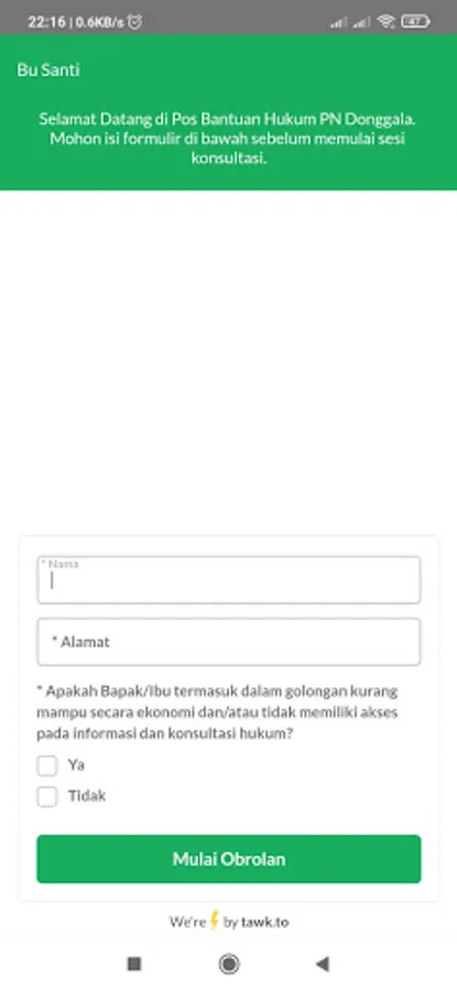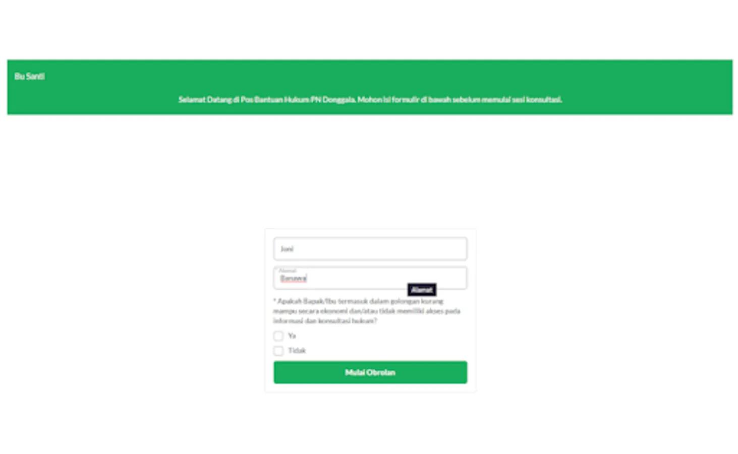 Layanan ini dibuat oleh Pengadilan Negeri Donggala yang seluruhnya dilaksanakan oleh Pos Bantuan Hukum Pengadilan Negeri Donggala.