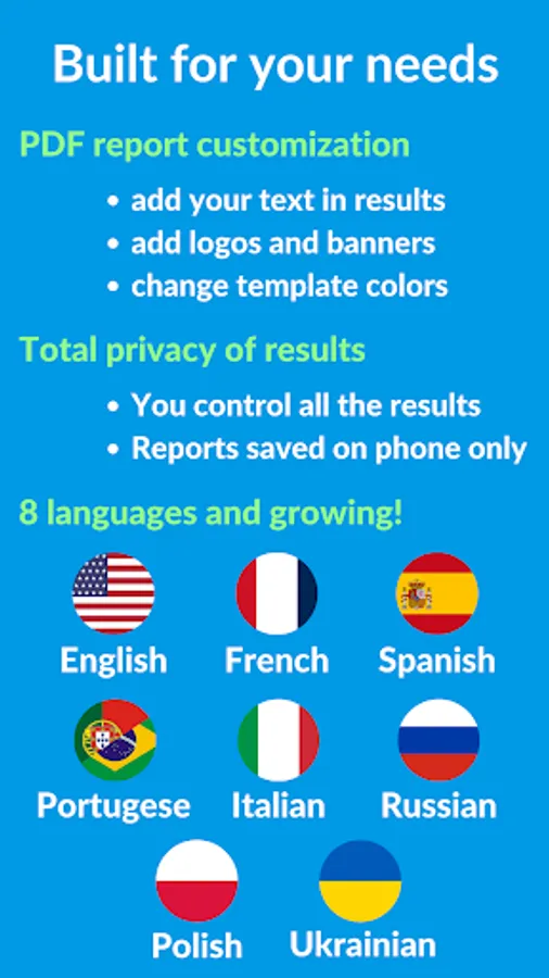- Save, export and share your results in JPEG (graphs) or PDF (full report).