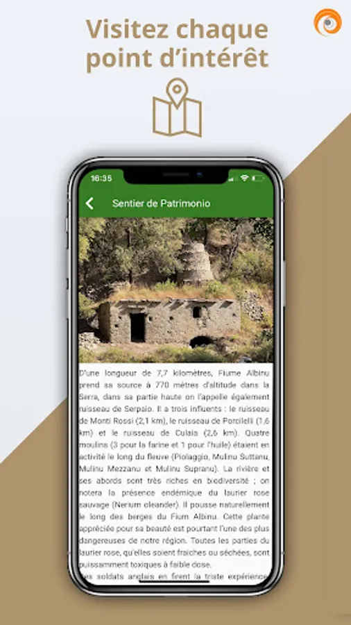 This application allows you to view all the information in French and Corsican versions, concerning the various points of interest of the Patrimonio Heritage Trail.