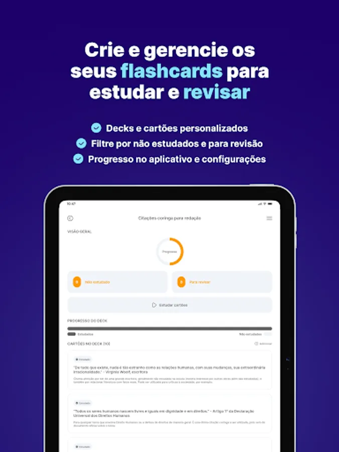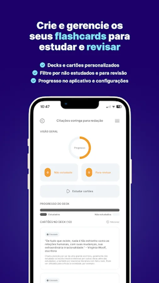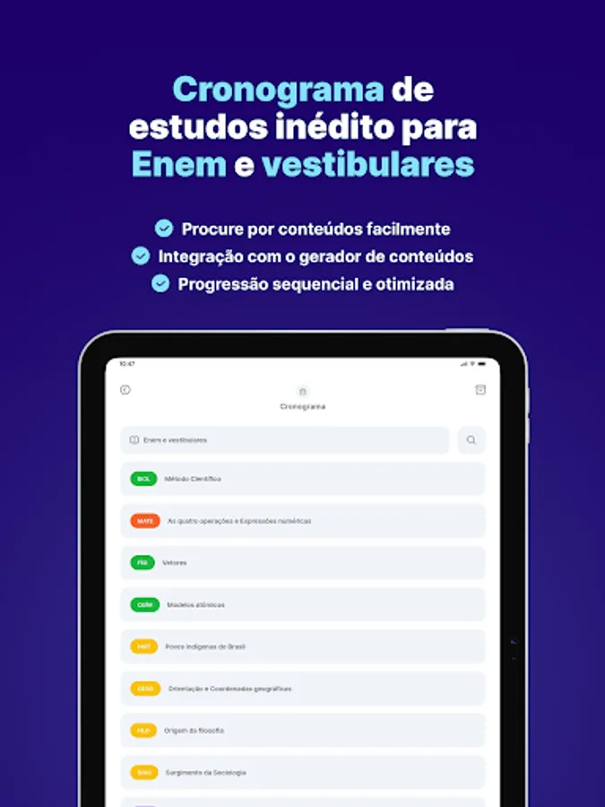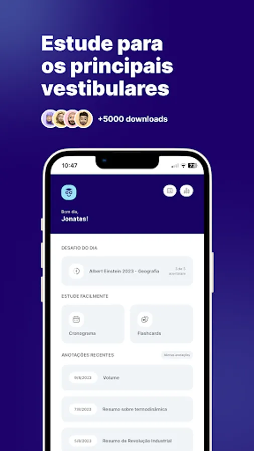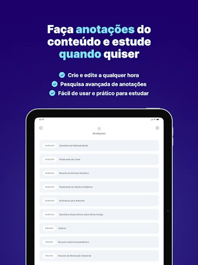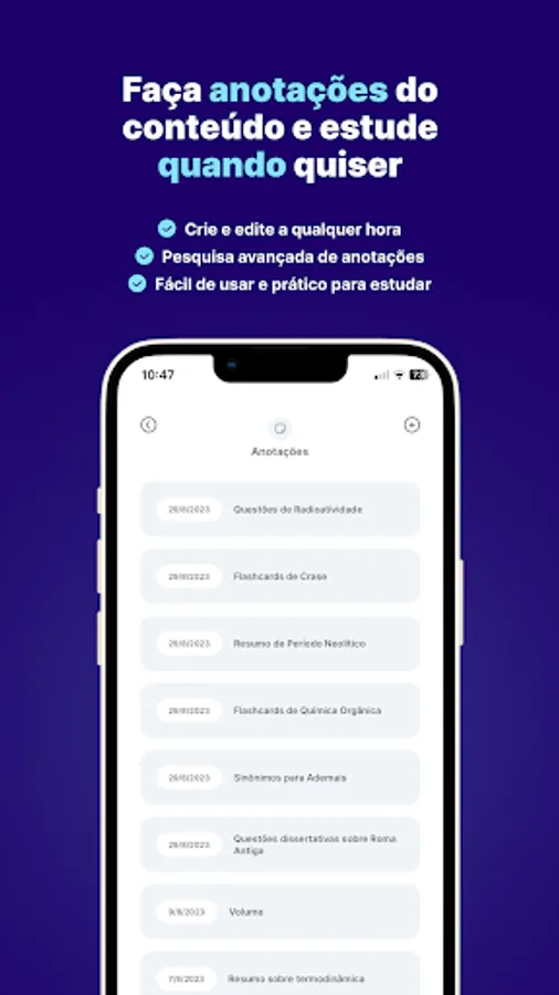 Download the Coruja app and transform your study experience like never before. We offer a range of resources and tools that will revolutionize the way you approach your studies, saving you time and raising the quality of your learning.