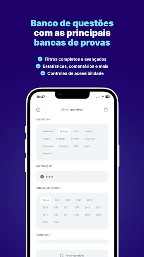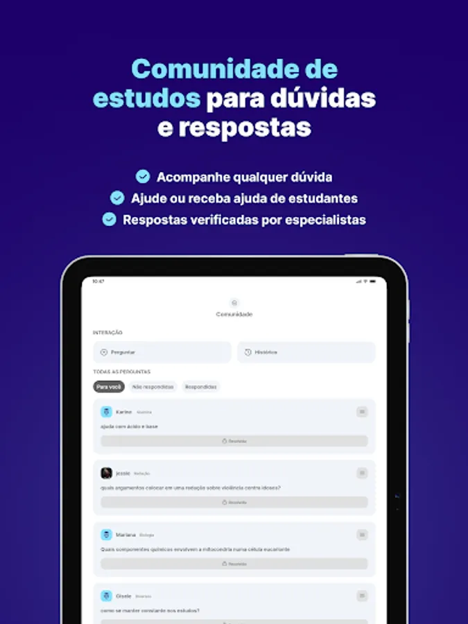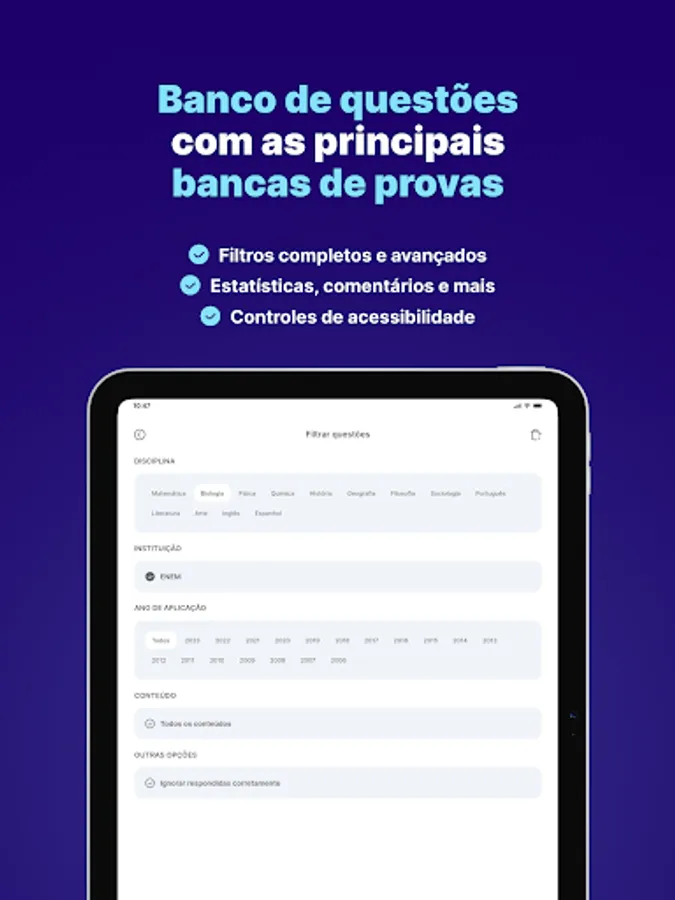 - Question Bank: Explore a vast collection of questions from different test banks across Brazil. Create custom workbooks, access detailed statistics on questions, and find step-by-step solutions.