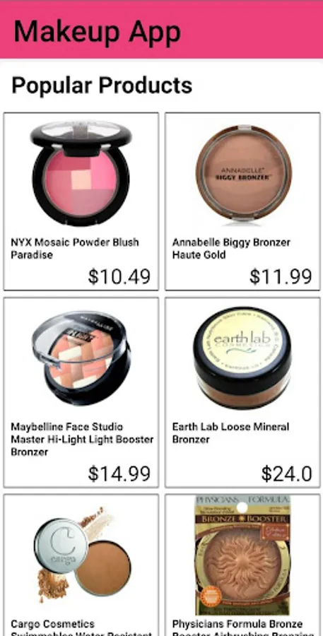 The best makeup products details app with lots of brands and types.You can use this make app to get to know about latest prices for makeup products of 10 types and 50+ brands