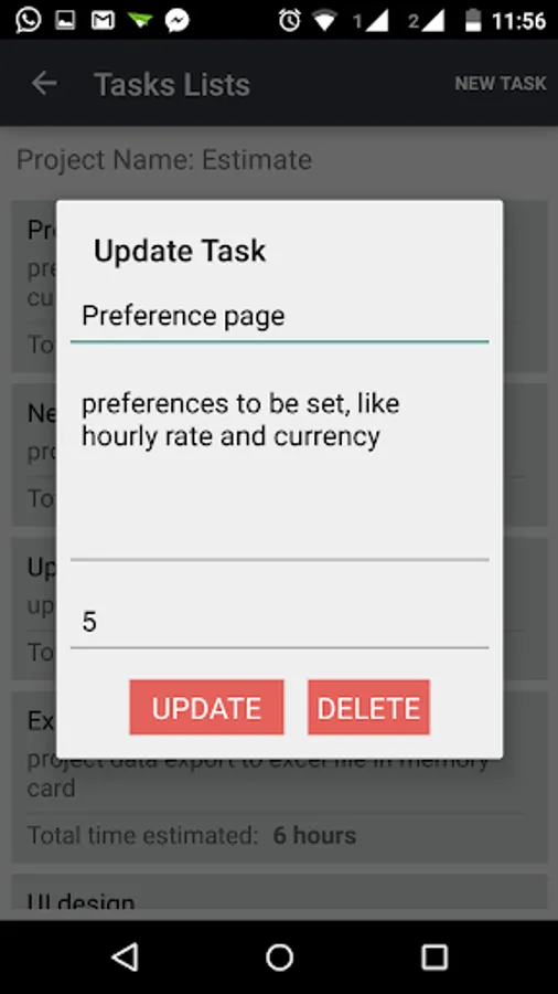 Estimate application will help you to estimate cost of your project tasks wise. Save base hourly rate of your work in preferences page. It will show you how much you can quote for the particular project. If you don't want to estimate your project cost on hourly base then there is an option to provide cost of each task directly. I am a freelance developer and I needed some application like this. So I developed and thought that estimate application may help other developers as well. By using estimate application you can see how much time you have allocated for particular task.