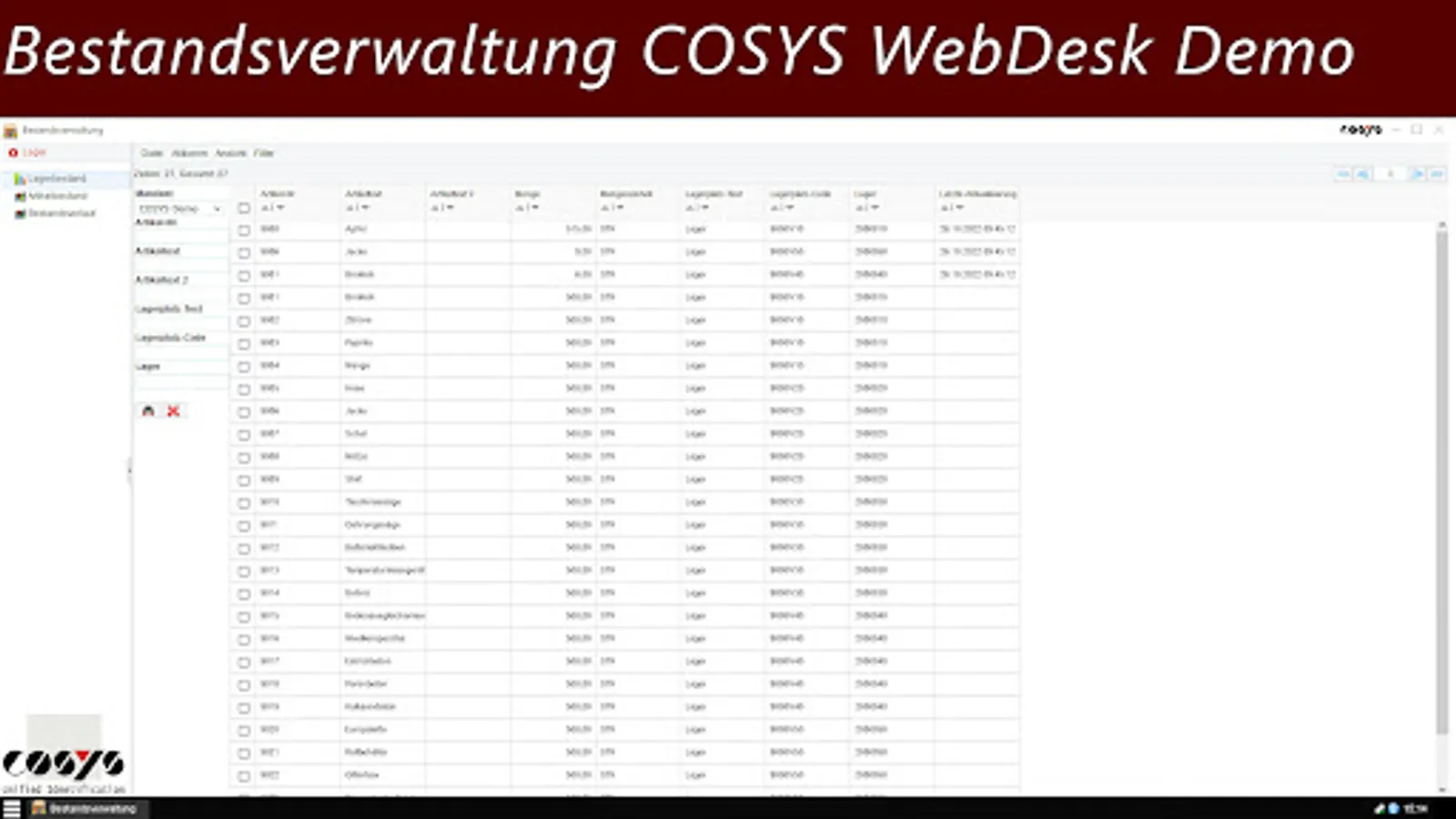 For the full experience of COSYS inventory management, request access to the COSYS WebDesk/Backend. Apply for access data by e-mail via the COSYS expand module.