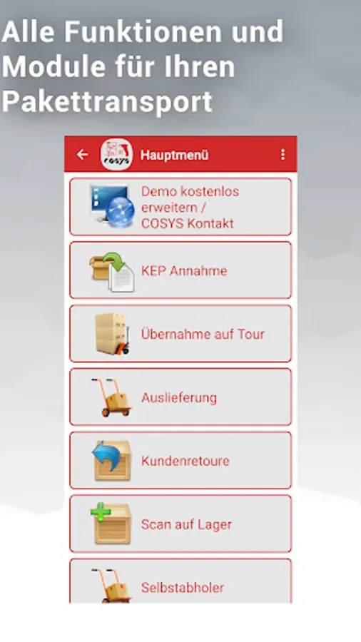 COSYS Pakettransport App ensures a fast and transparent package handling and transport process.