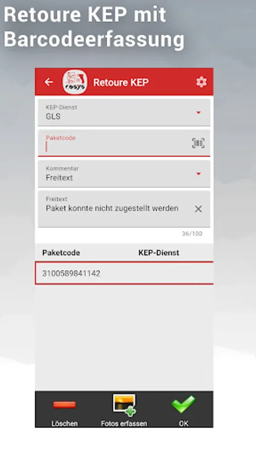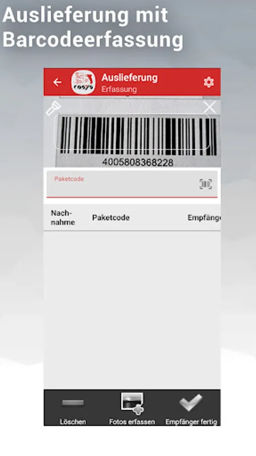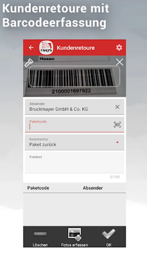 A user-friendly and intuitive user interface of the app also helps beginners to experience a quick and easy entry into the capture of incoming packages to be delivered, so that they can be productive in no time. Incorrect entries and user errors are prevented by intelligent software logic.