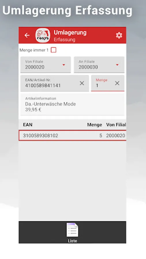 • Stock inquiry: Search for the current stock of an article via the barcode scan, both across branches and across locations.