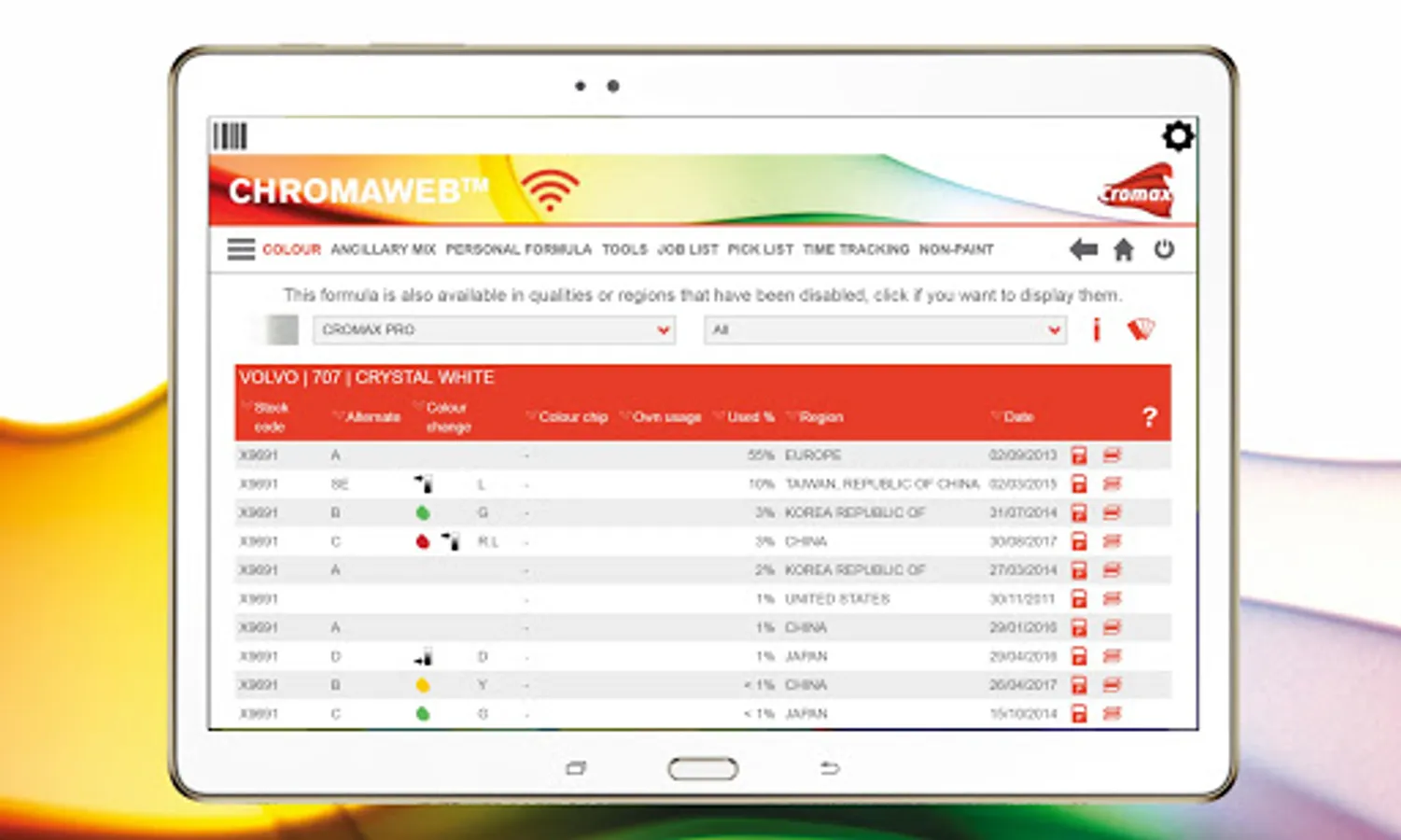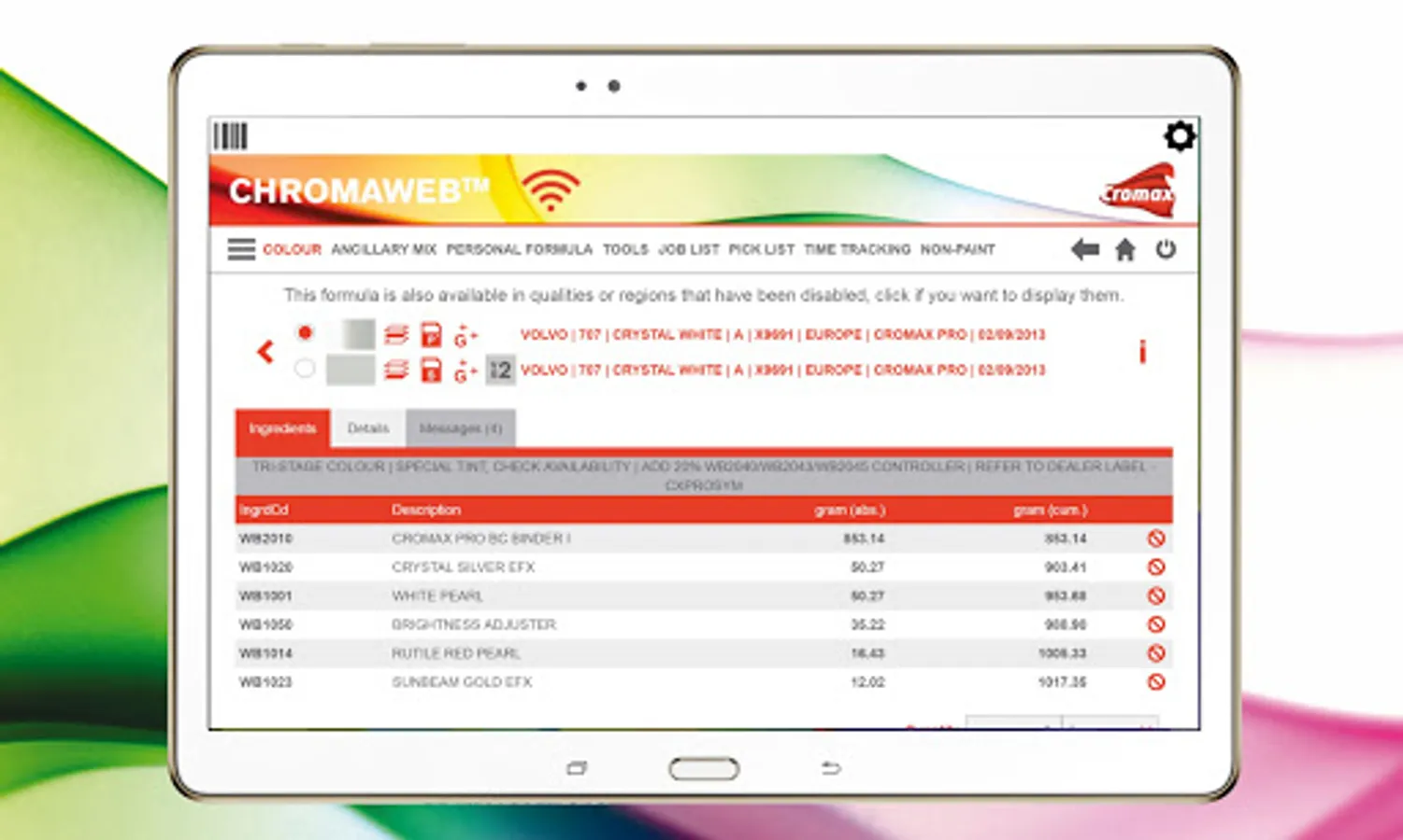 This simple-to-use but comprehensive Cloud-based tool helps Cromax bodyshops optimise quality and productivity. It speeds up colour formula retrieval and makes product management easier as well as providing instant colour, product and software updates. The ChromaWeb App is an integral part of the ChromaConnect system and its intuitive interface, makes it a truly comprehensive and ‘must-have’ tool.