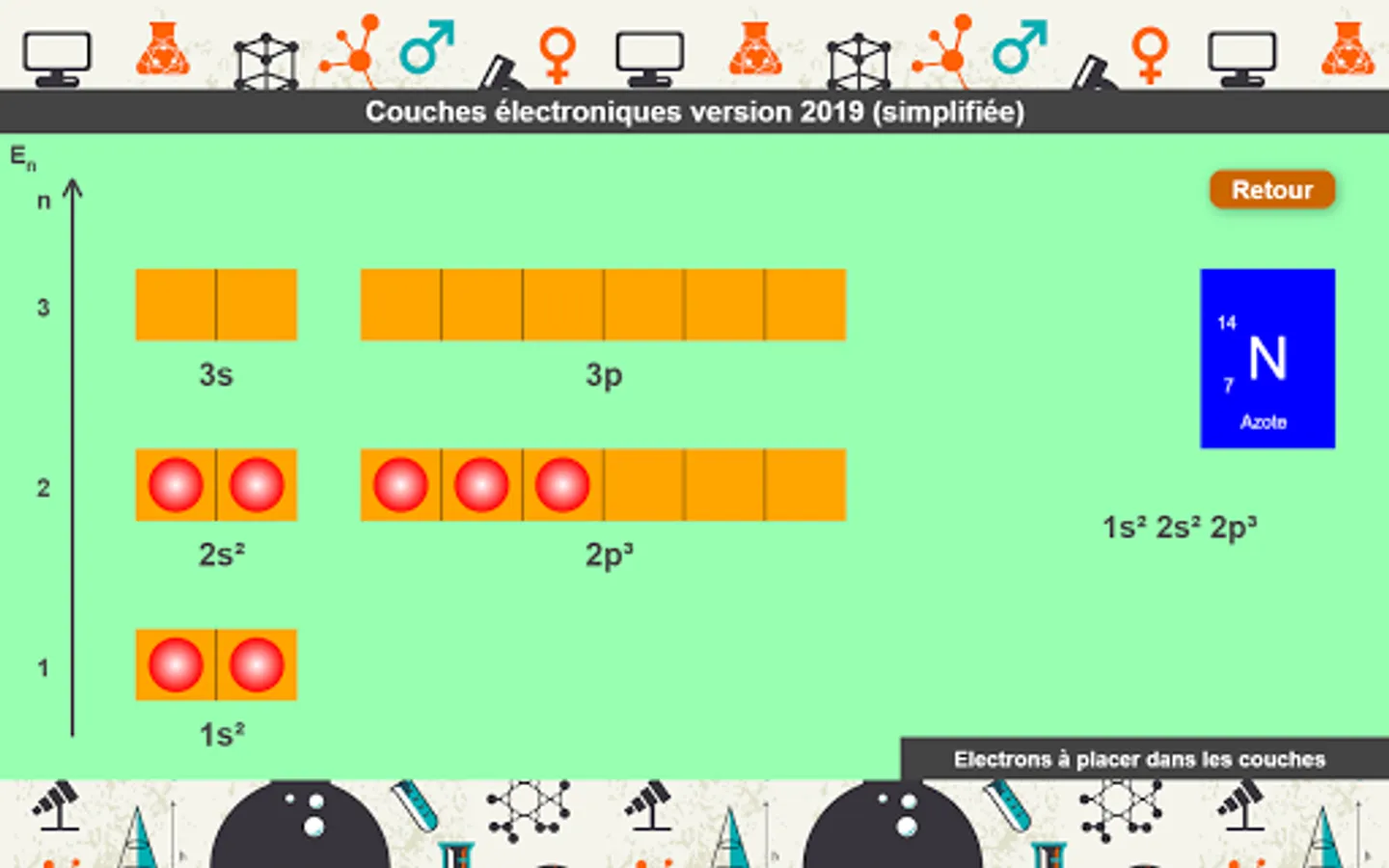 Using the "Electronic layers lite" application, the pupils aim to discover what are the rules which govern the distribution of electrons in the various electronic sublayers.