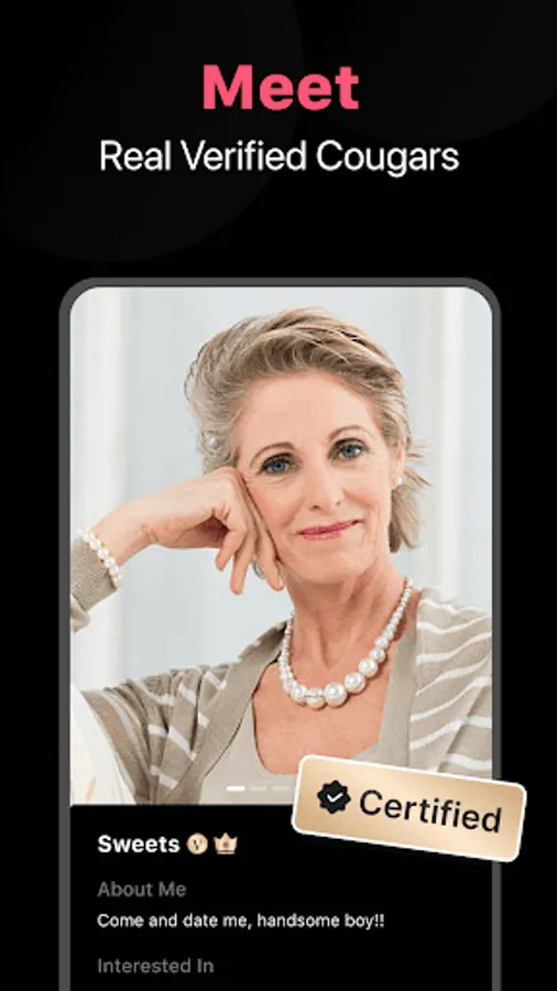 Tons of mature women (cougars) aged over 35 are seeking younger men aged over 20 to be their dating partners every day. Most of older women who are looking for a cougar life have completed above average education and have good careers. At the same time, more and more younger charming men love to build a relationship with older women. Based on this, the Cougar Dating App will provide opportunities for both groups of people to match, hook up and chat.