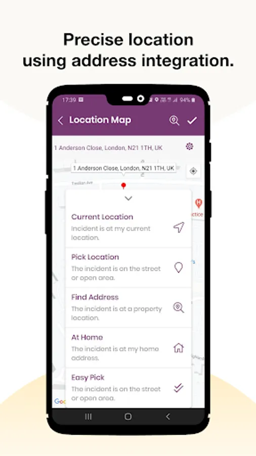 - Identify the nearest address of an incident using the auto address finder.