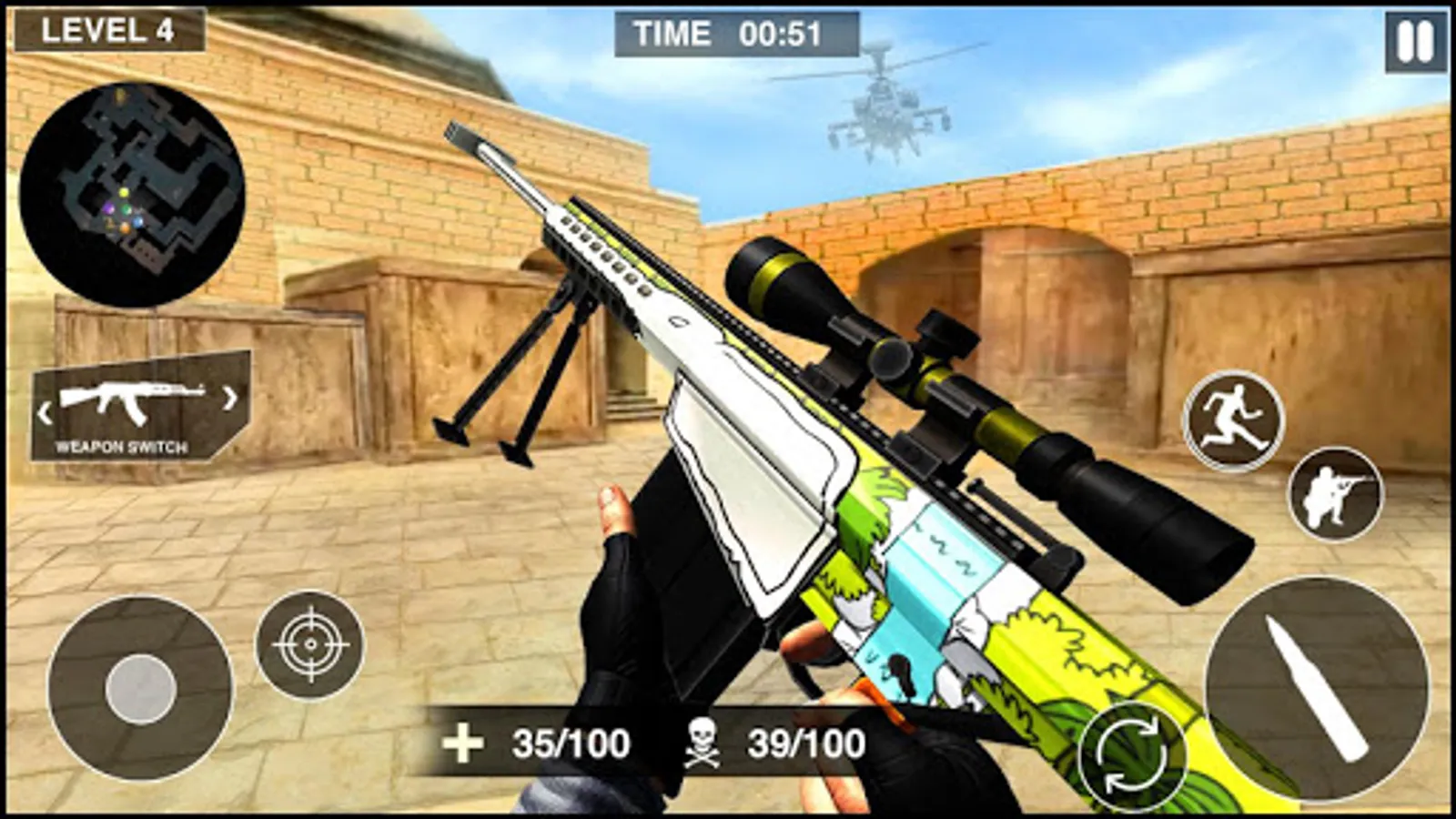 Teen kritiese staking is die regte pretspeletjies en die beste ontmoeting met skietspeletjies teen terroriste. U is verslaaf aan hierdie gratis skietspel, dit het die beste pasgemaakte kontroles, baie verskillende soorte aanvalwapens soos moderne messe, gewere, Sniper, M4, AK 47 en SMG. Hierdie speletjie het regte oorlogsinstellings en speletjies van die beste geweer-speletjies. U het alle vorme van gratis wapens en wapenopgraderingstelsel met munte. U is die kommando van spesiale magte, so lei u militêre span van voor af en geniet die beste ervaring met hierdie verslawende FPS-speletjie-beste skietspel 2020