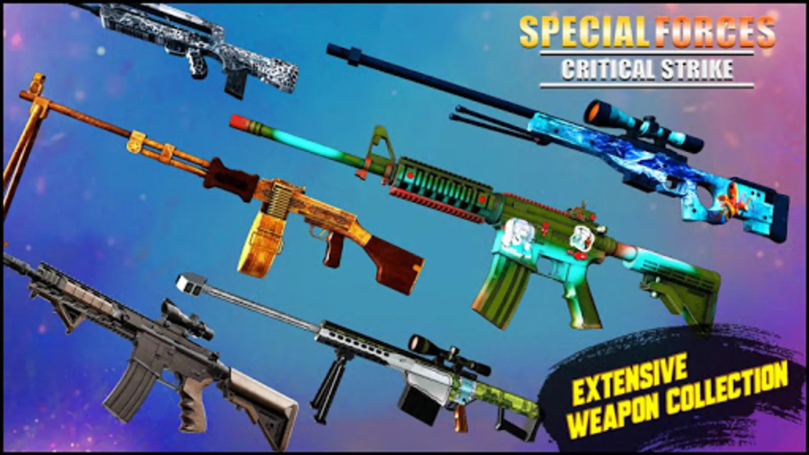 Special Forces Critical Strike is die beste geoptimaliseerde spel vir mobiele en tablet en is op die regte pad skietspeletjies. Dit het die soepelste beheermaatreëls en maklike spel van teenoorlogstaking. Hierdie speletjie gee jou konsole shooter prettige speletjies om te speel en donderweer van regte oorlog. Hierdie Counter Ops-kritieke 3D-staking het die beste en moderne oorlogspeletjie-beheermaatreëls wat u regtig pret sal gee en u kan enige gratis skietspelstryd beveel. U sal vyande skiet om dood te maak, en slegs hiermee sal u kan oorleef in 'n vrye skietspel-stryd. U wapenarsenaal het alles van messe tot moderne gewere, dus u moet die wapen noukeurig kies vir komende oorlogspeletjies. Dit is 'n beroep op oorlogspeletjies en u gaan spesiale staking in gratis speletjies teëkom. U sal die slagveld aangryp en as militêre kommando en topskutter u die konflik in gratis skiet- en beste FPS-speletjies hanteer. Die vredesbrekers moet in gratis vuurspeletjies gestraf word. Gebruik die masjiengeweer om kragtig te skiet en wen hierdie wêreldoorlogspeletjies vir u land en word die ware legende van die Amerikaanse spesiale magte.