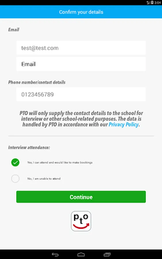 Parent Teacher Online (PTO) is the leading online booking service for parent teacher interviews in Australia, the United Kingdom and many other countries. The PTO app provides secure access to make and view your bookings conveniently from your phone or tablet.