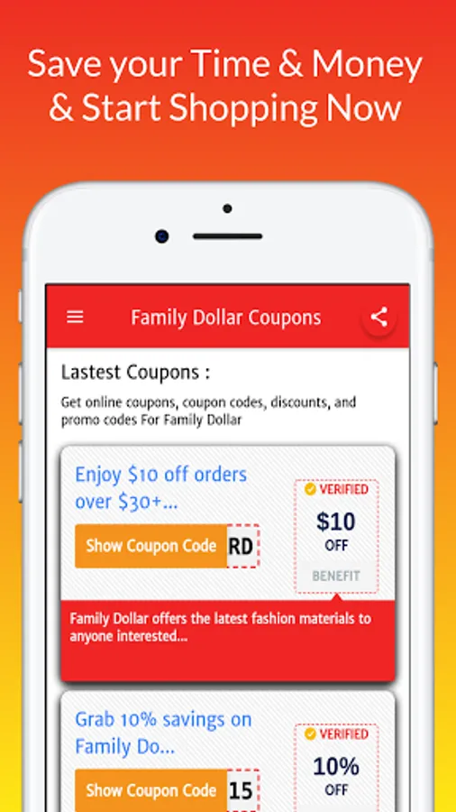 Why pay regular price? Start shopping wisely with Coupons for family dollar today. Within this app, you will find all Coupons for family dollar in less than a minute.