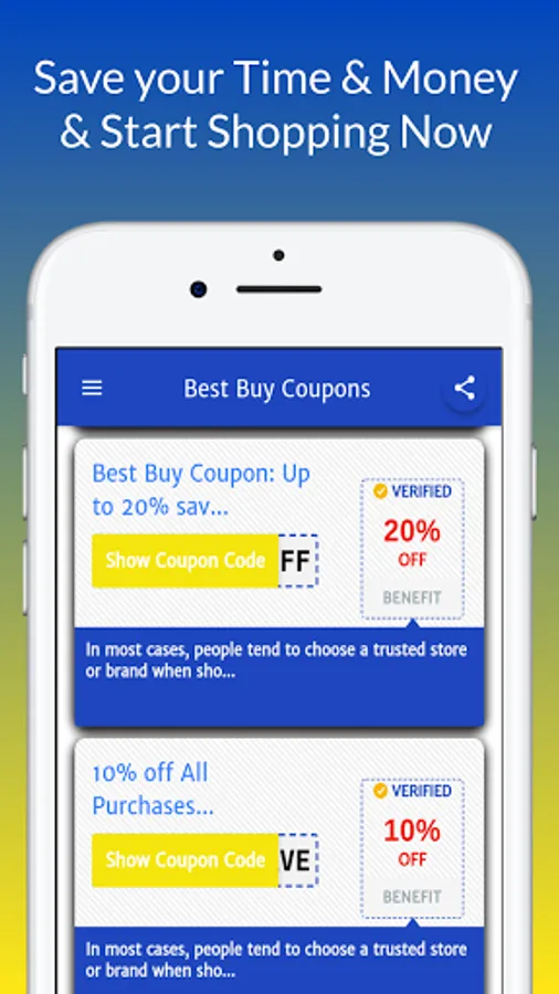 Within this app, you'll find all Coupon for Best Buy in less than a minute.