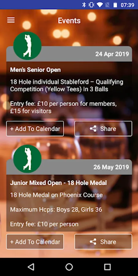 • Push notifications to stay informed of club events and promotions
