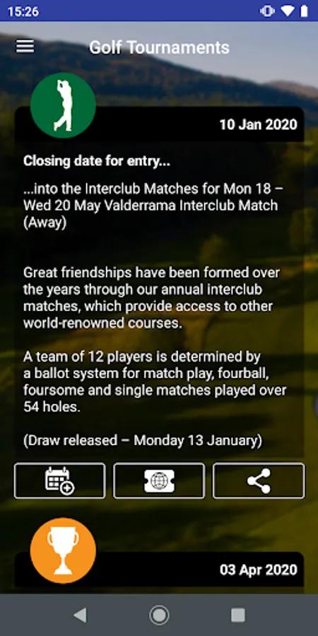 • The facility to keep up to date with all the events and latest fixtures - including the ability to book directly