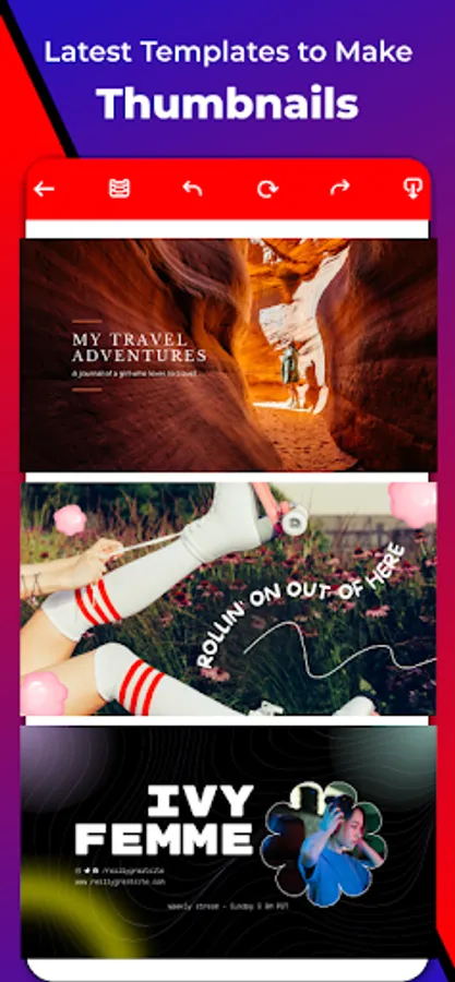 Start making amazing thumbnails, cover photos, and professional looking banners for free with thumbnail maker designer app.